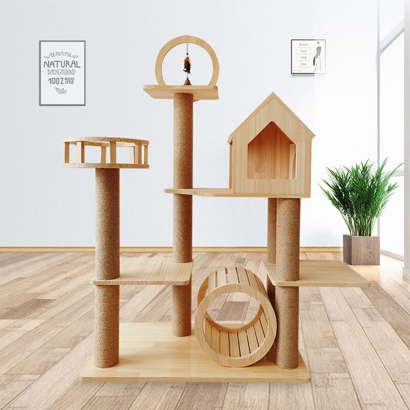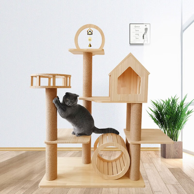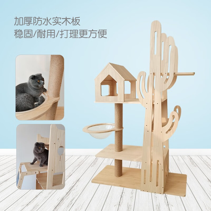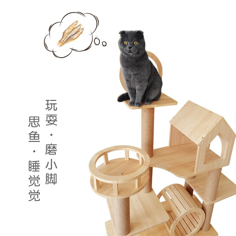 邦可臣 猫爬架大型猫窝实木豪华猫猫抓柱猫别墅通天柱猫树小型猫咪架子 多乐趣【见图二】
