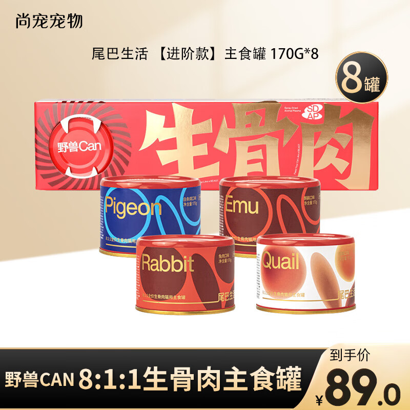 尾巴生活猫罐头 野兽CAN 811生骨肉主食猫罐头170g 猫咪幼猫成猫罐头湿粮 【进阶款】170g*8罐