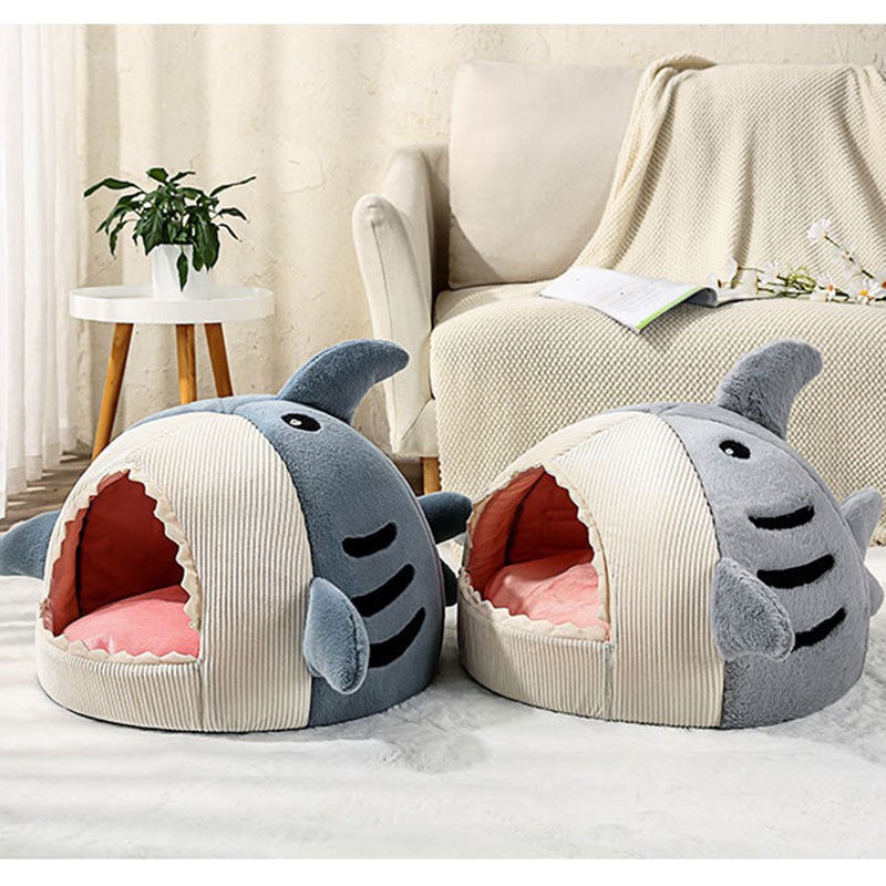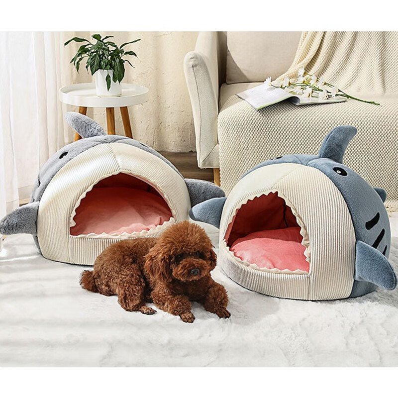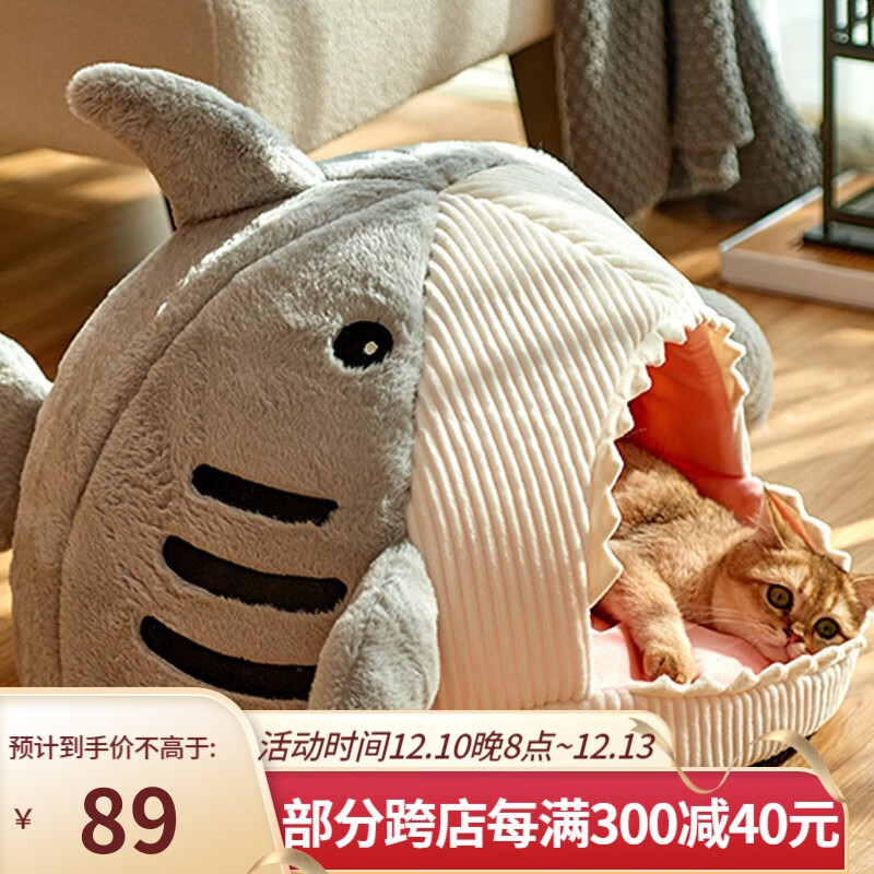 DR.ANIMALS萌趣猫狗窝封闭式猫窝四季通用猫屋可拆洗秋冬保暖狗窝网红猫床宠物用品 保暖灰色鲨鱼窝 L码 适合15斤内