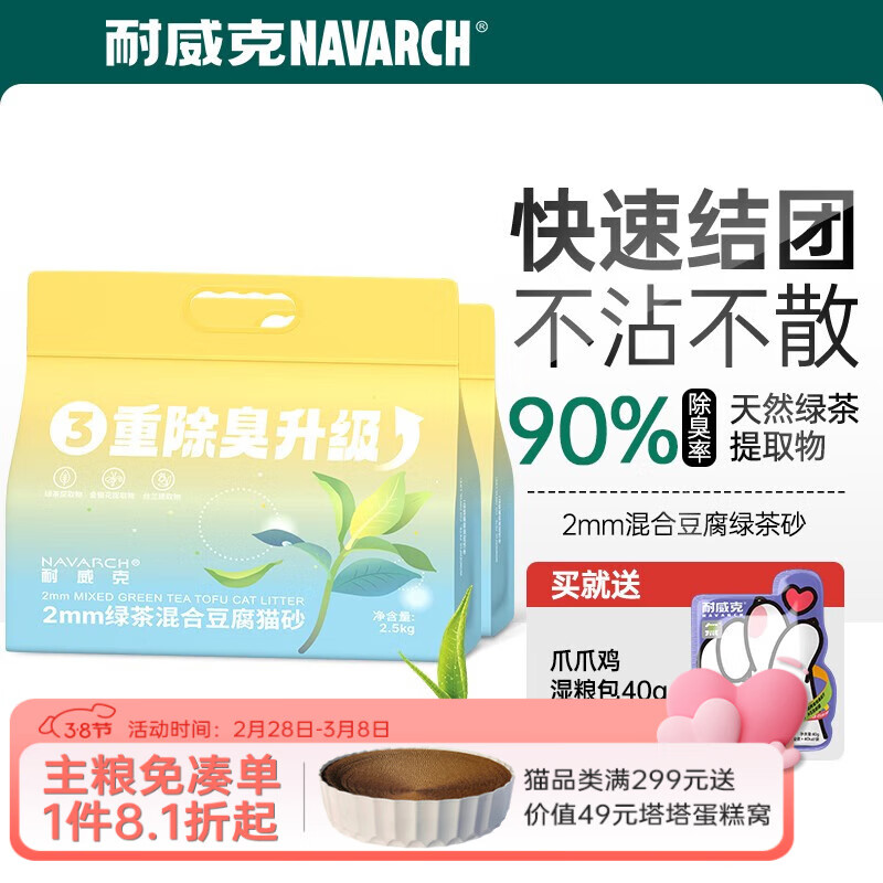 耐威克(Navarch) 绿茶豆腐猫砂 吸水除臭植物豆腐易结团 宠物猫咪用品猫沙 混合砂丨10斤(试用)
