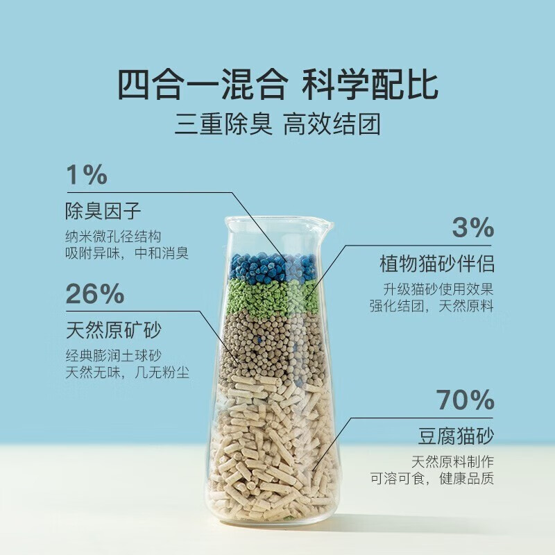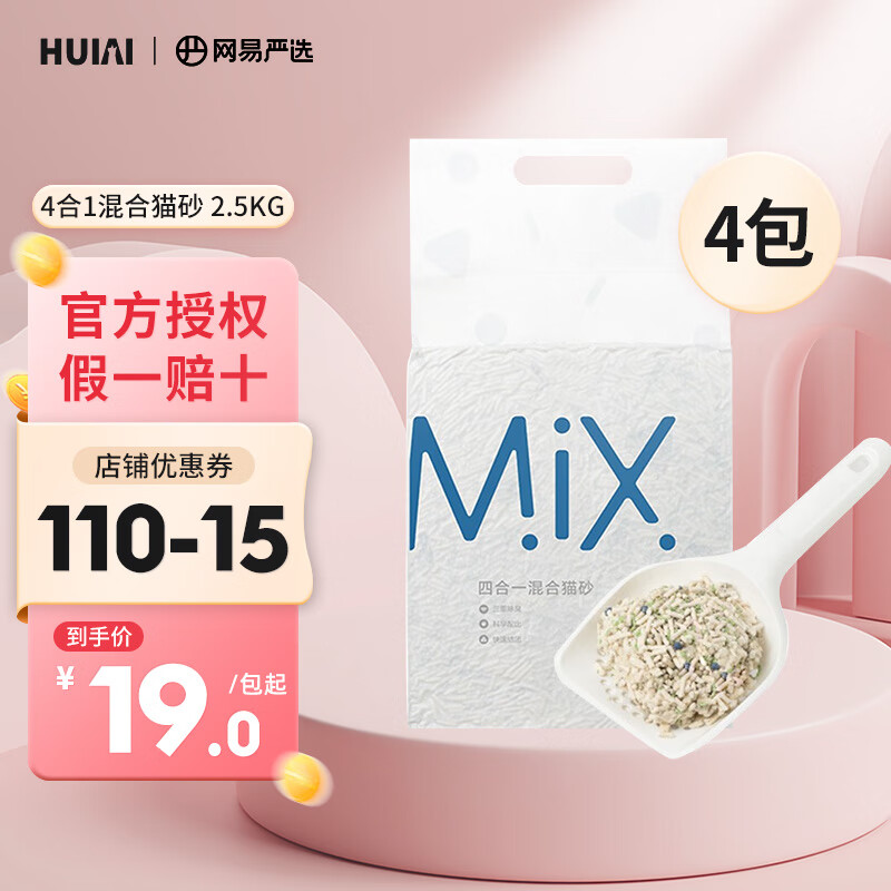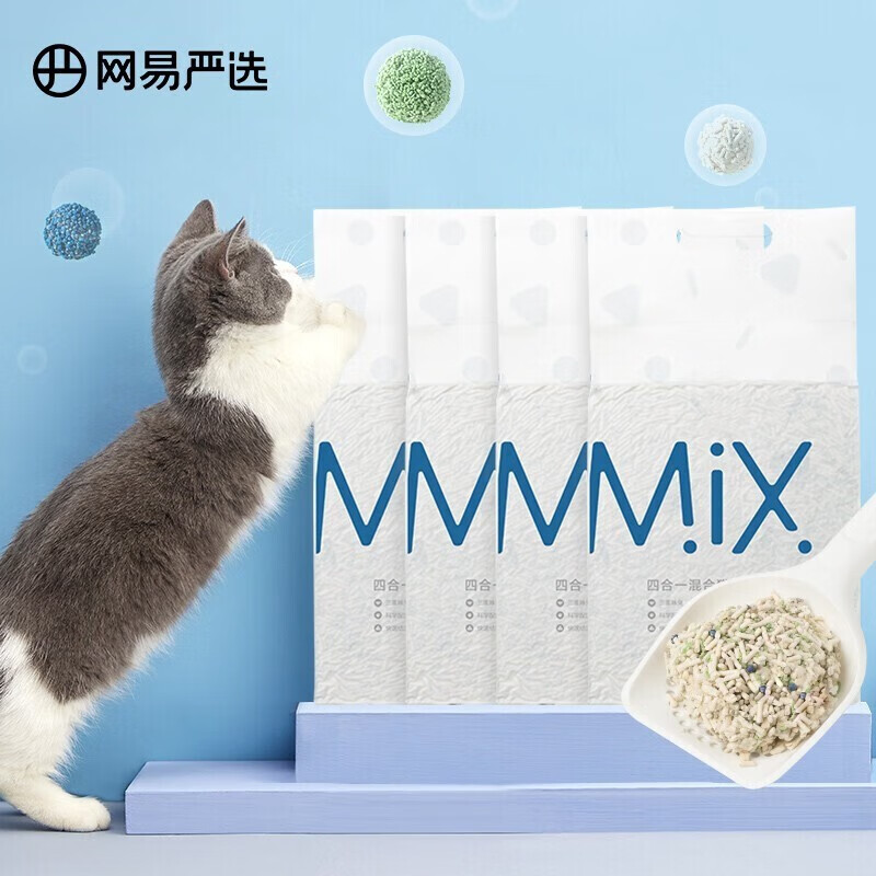 网易严选猫砂 4合1混合猫砂豆腐猫砂2.6kg 除臭无尘易结团可冲马桶猫沙 4合1混合猫砂 2.5kg*4包