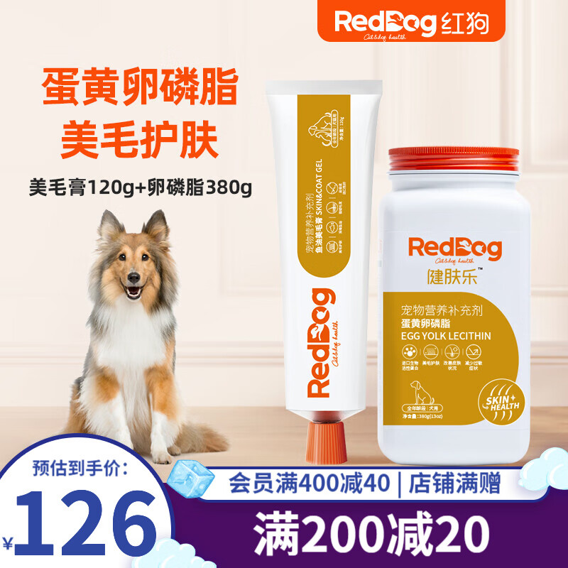 红狗RedDog 鱼油美毛膏 狗狗猫咪深海宠物鱼油 泰迪金毛美毛护肤 亮毛爆毛 犬猫通用 美毛膏120g 犬用卵磷脂380g