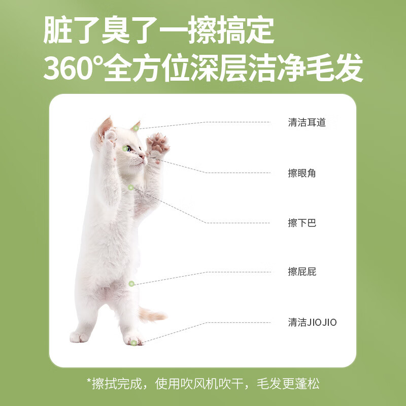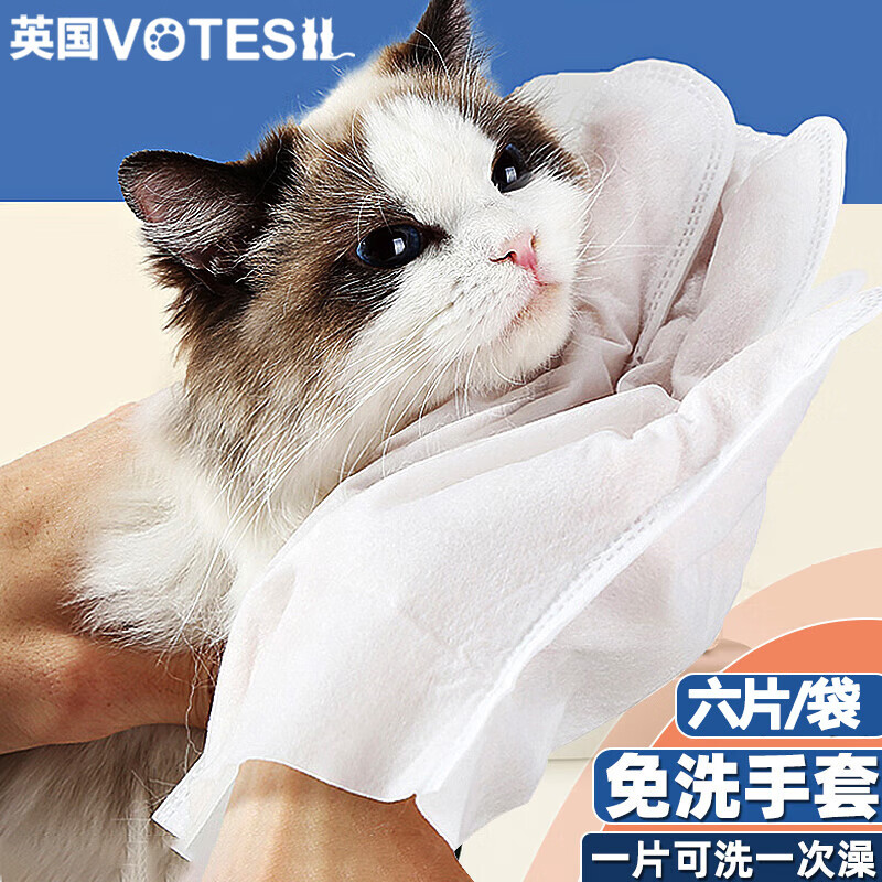 莲萼liane英国 宠物湿巾免洗手套猫咪狗狗杀菌去味除臭猫狗专用湿纸巾幼犬干洗擦脚洗澡全身清洁用品6片/包