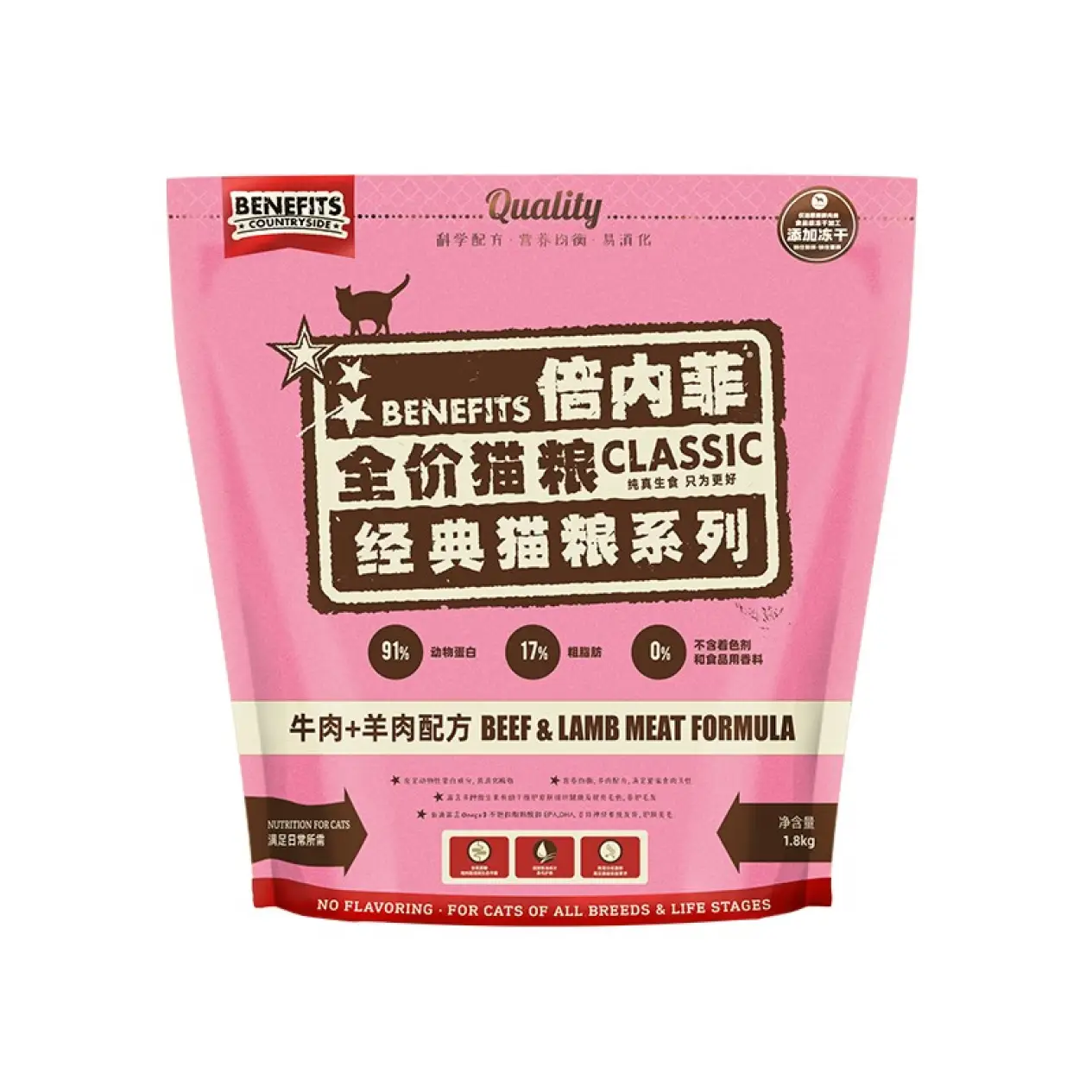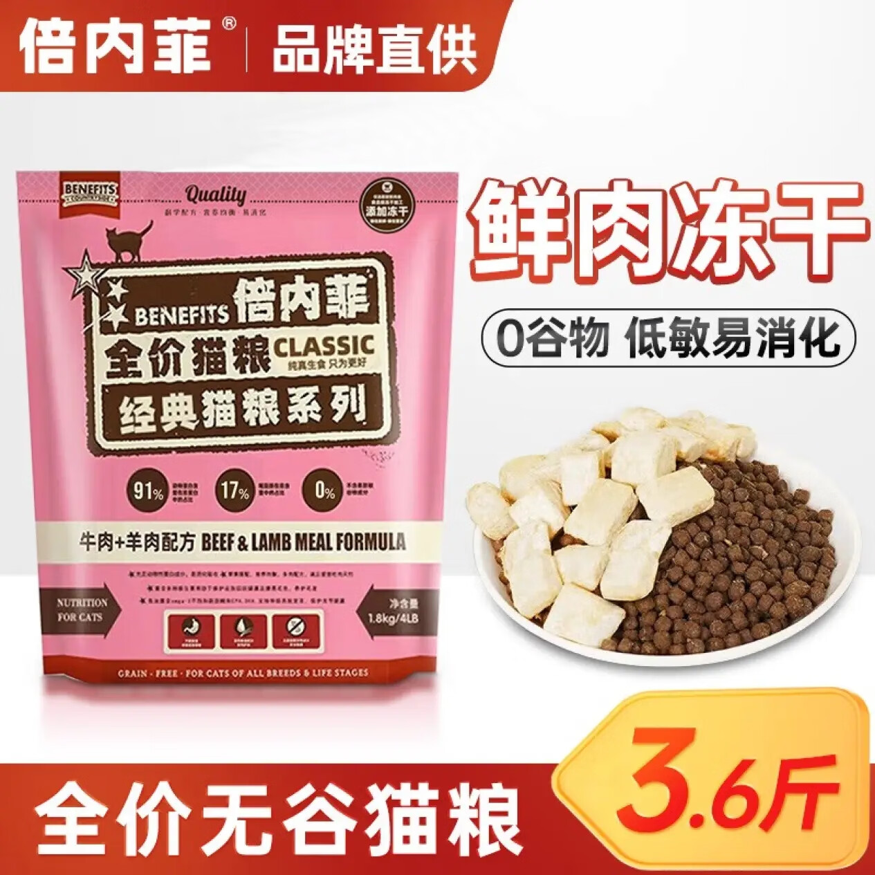 倍内菲全价无谷冻干猫粮全阶段期年龄贝内增benefits肥蓓非发幼成主粮腮 经典牛羊肉猫粮1.8kg 防伪可查 假一赔十
