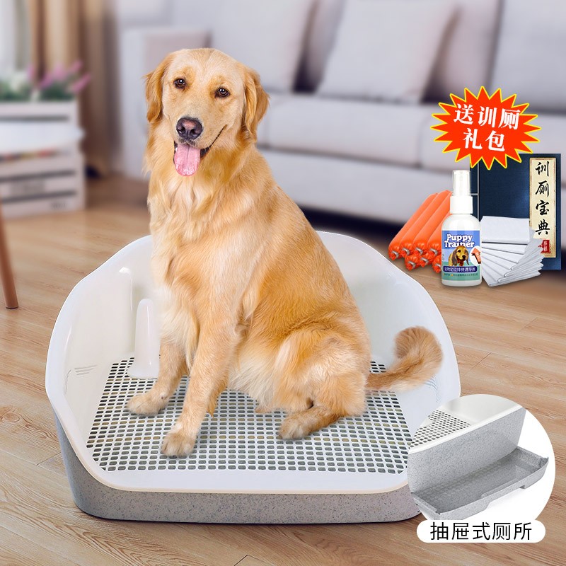 【下单有礼】华元 狗狗厕所大号特大号中小型大型犬泰迪金毛拉布拉多宠物狗便盆拉屎尿盆 典雅灰色-抽屉清洁升级款 特大号(适合50斤以内)