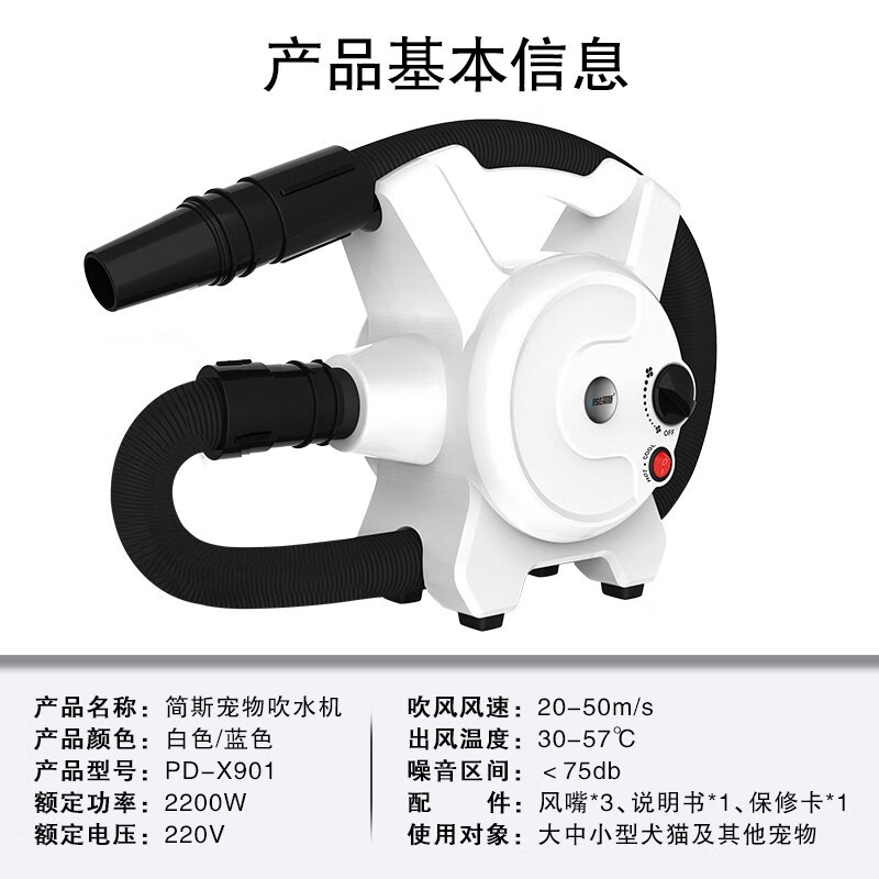 来旺兄弟宠物吹水机大型犬狗狗吹风机10分钟速干低噪猫咪用洗澡吹毛烘干机 PD-X901 时尚白