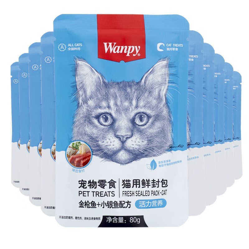 顽皮(Wanpy)猫咪鲜封包 全价猫粮宠物猫咪猫湿粮幼猫成年猫 金枪鱼 小银鱼味 5袋