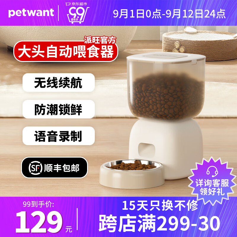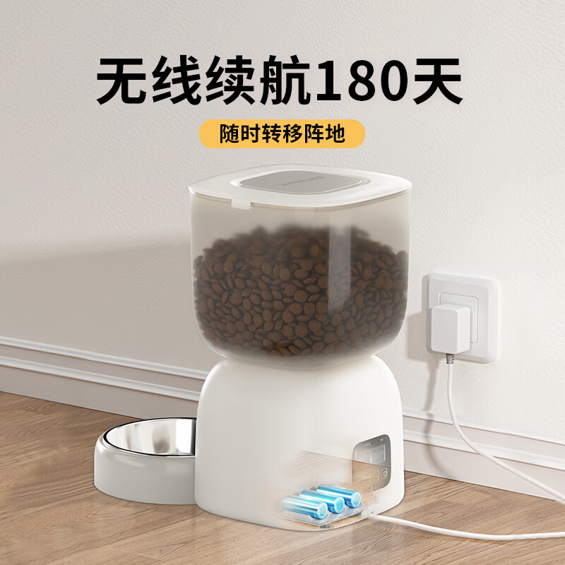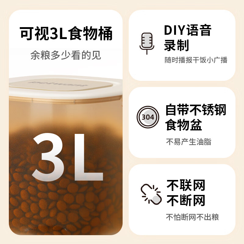派旺(PETWANT)自动喂食器宠物猫咪狗粮碗智能语音定时定量自助投食器 按键板/3L容量(限量奶油白)