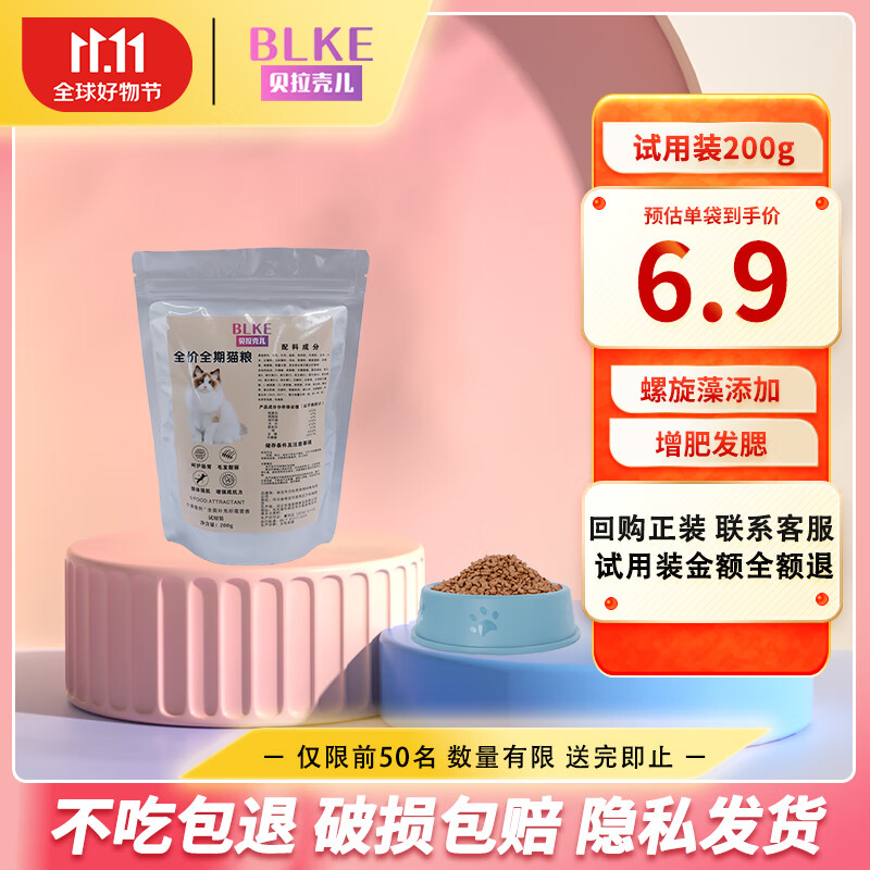 贝拉壳儿猫粮 全价全期猫粮 幼猫成猫布偶猫蓝猫英短增肥发腮通用猫粮试用 试用装200g【全猫通用】