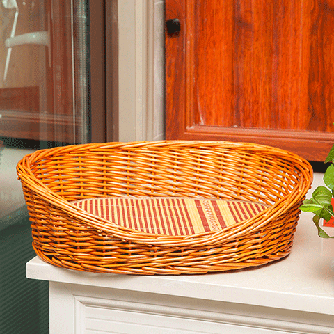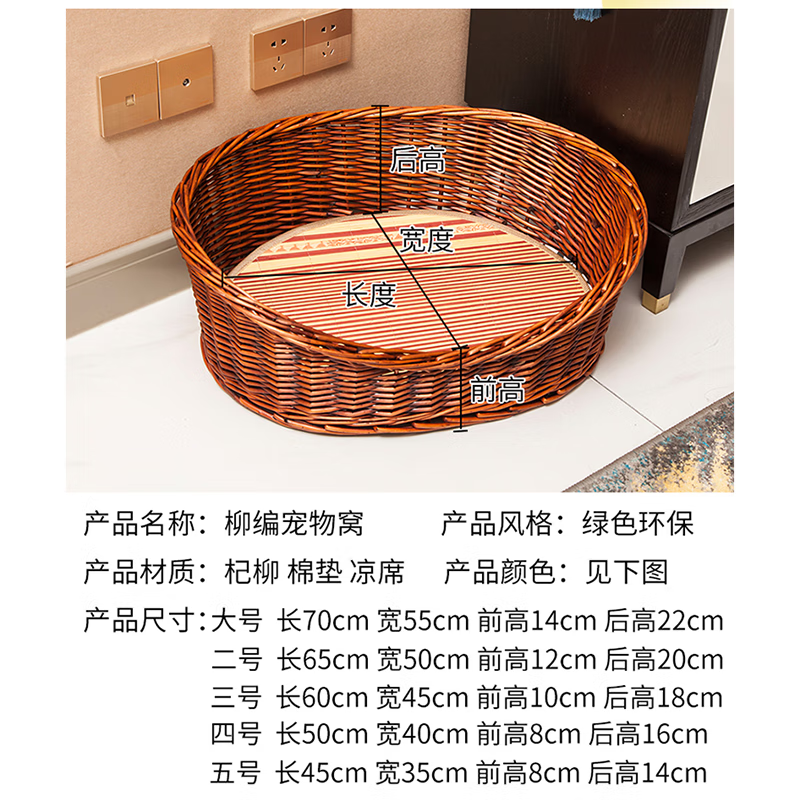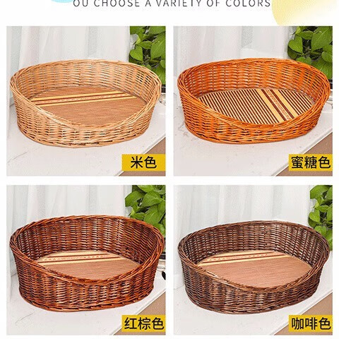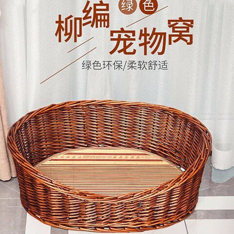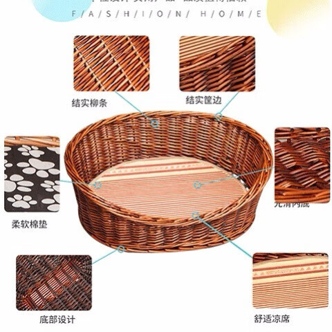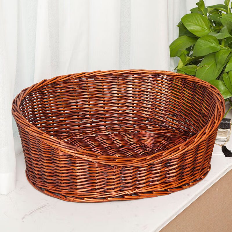 DRONTAL猫窝夏季狗窝四季通用小型犬窝网红藤编泰迪窝宠物用品狗床可拆洗 红棕色裸窝 大号适合25斤左右