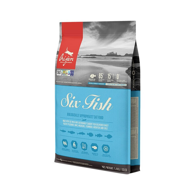 渴望(Orijen)六种鱼猫粮5.4kg 深海鱼无谷猫粮(临期)