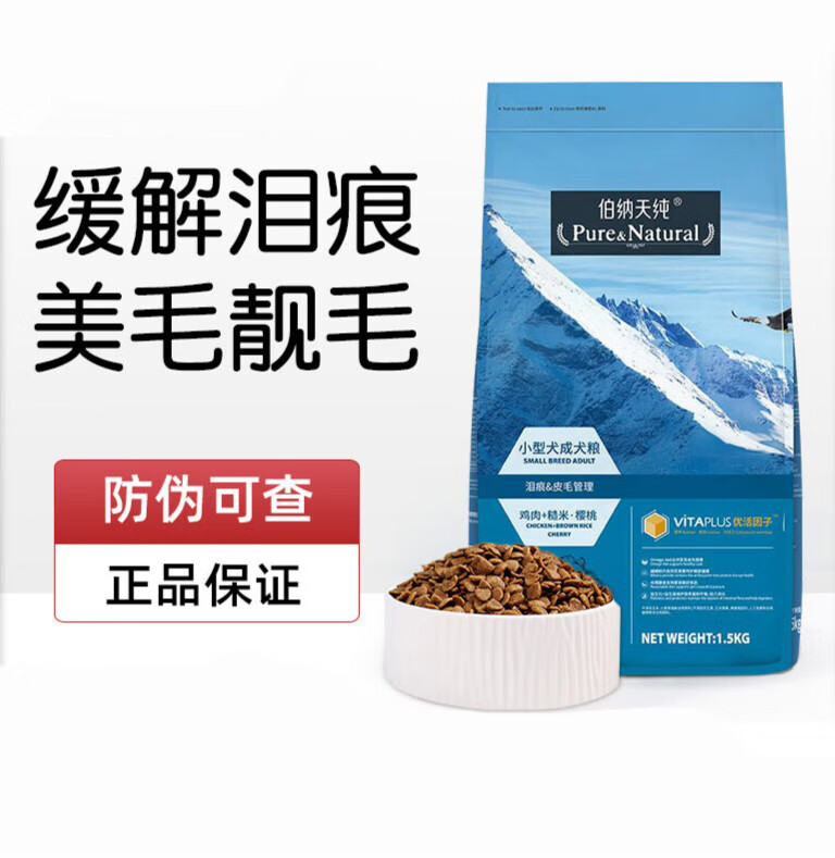 伯纳天纯狗粮10kg小型犬成犬幼犬泰迪柯基专用博纳天纯去泪痕犬粮 小型犬成犬1.5kg
