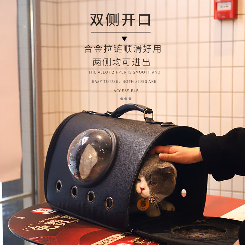 小佩猫包便携外出宠物单肩斜跨包中小型犬狗狗打针绝育手提笼子大容量 黑色 44*26*31CM
