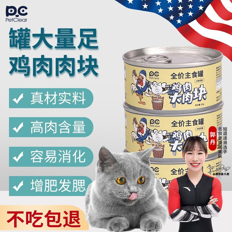 俏贝丽(PETCLEAR)猫罐头零食 幼猫主食罐头湿粮猫咪增肥发腮 纯罐鸡肉80g