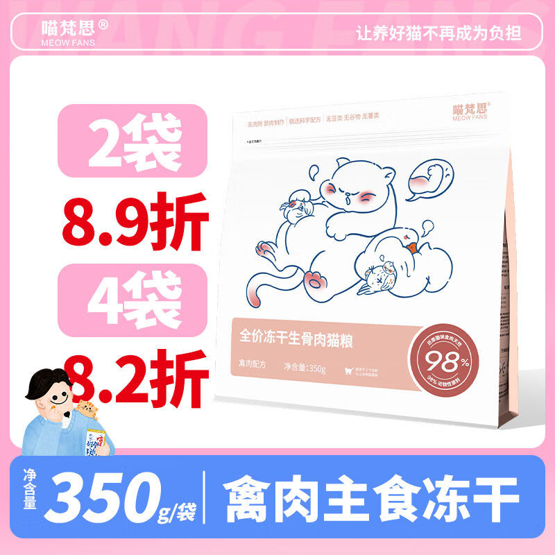 喵梵思生骨肉全价主食猫冻干成猫幼猫全阶段禽肉鹅肉鹌鹑猫粮350g 【单包尝鲜】鹅肉鹌鹑冻干350g