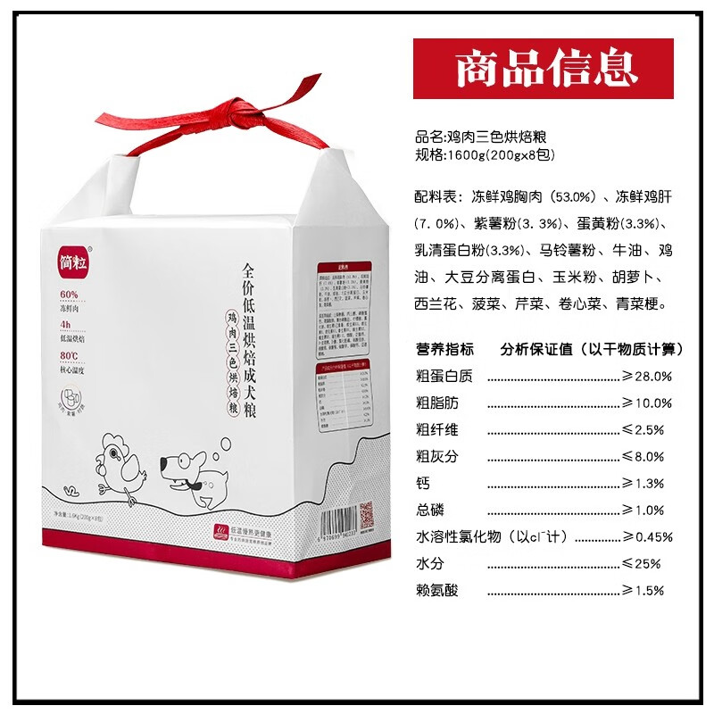 简粒狗粮三色低温烘焙粮鸡肉牛肉味狗狗主粮比熊泰迪小型成犬软粮补水 鸡肉1.6KG