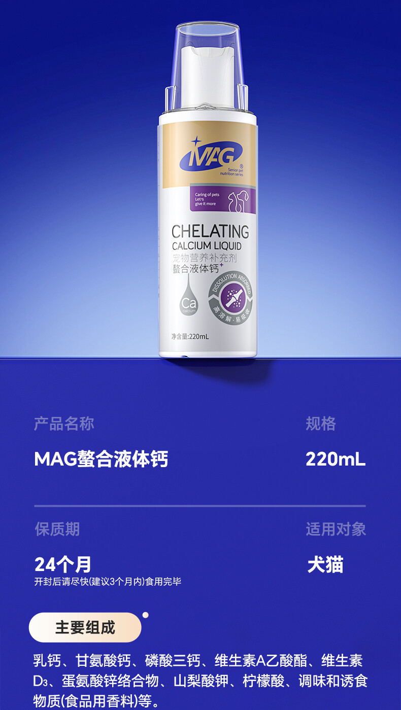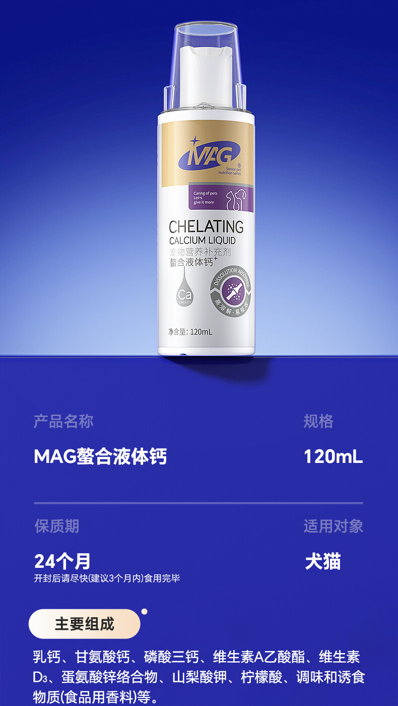 MAG 宠物营养补充剂有机螯合液体乳钙 120ml/220ml