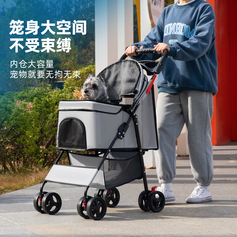 兰叙宠物狗狗猫咪外出手推车中大型小犬雪纳瑞轻便可折叠分离遛狗拉车 黑色【基础款】可承重30-50斤 【
