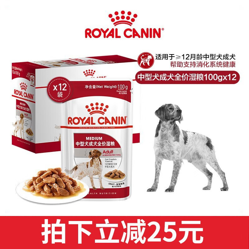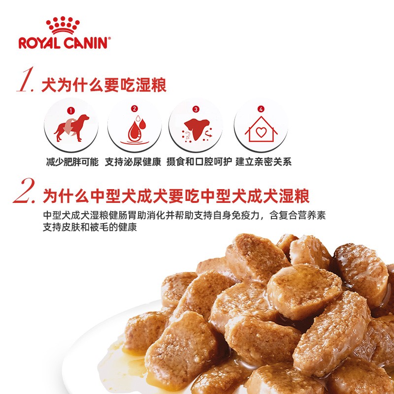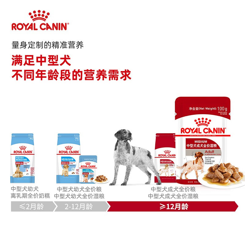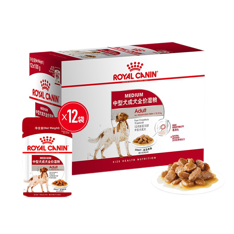 皇家(Royal Canin)进口主食犬用湿粮 全价狗狗湿粮包 中大型成犬100g*12包