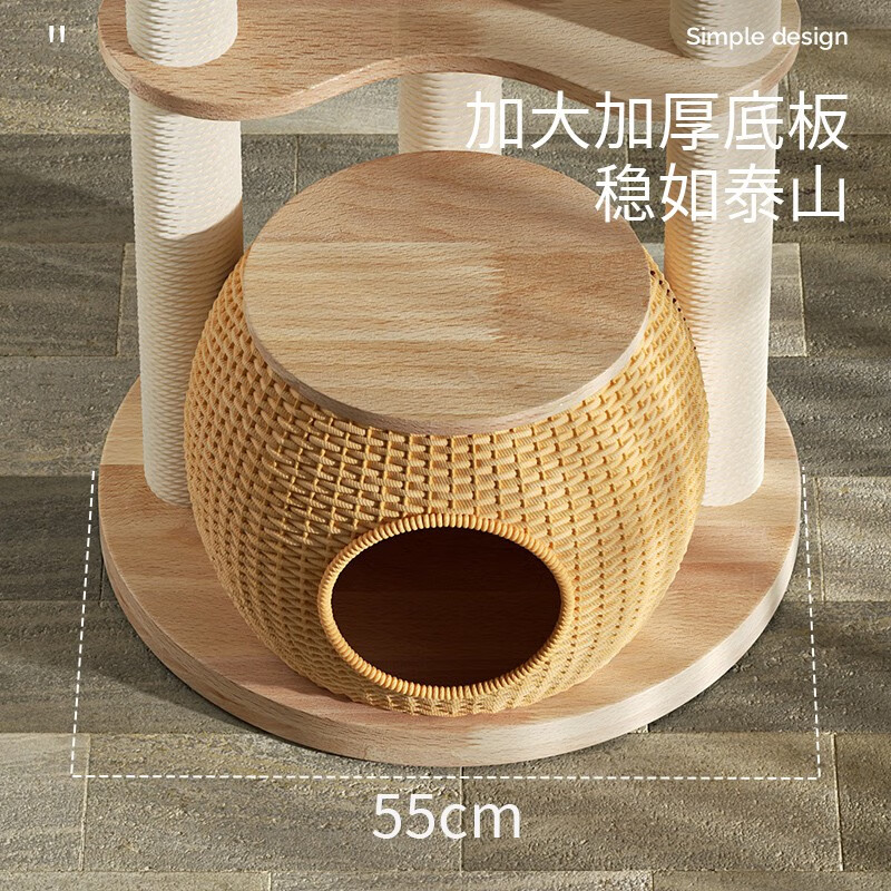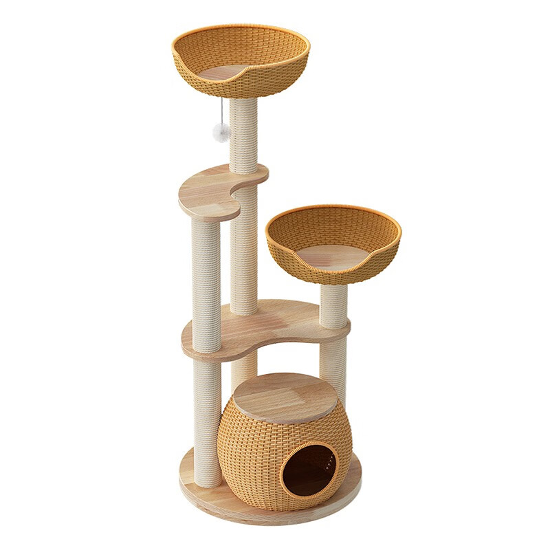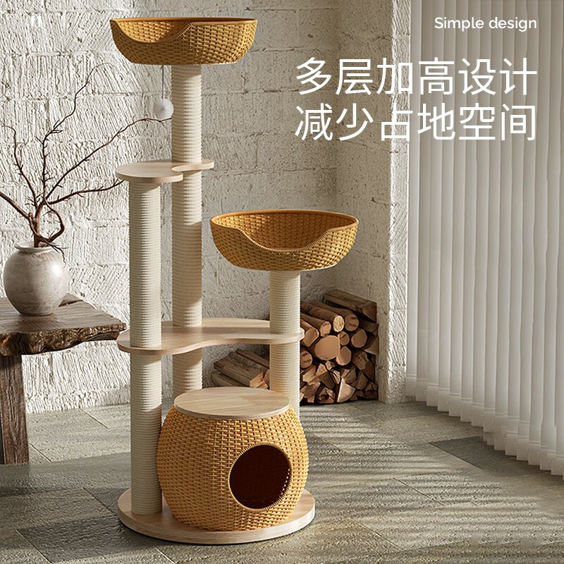 POPOCOLA实木藤编猫窝猫爬架子猫树一体夏天小型剑麻多猫小户型不占地猫架 X-03藤编猫爬架