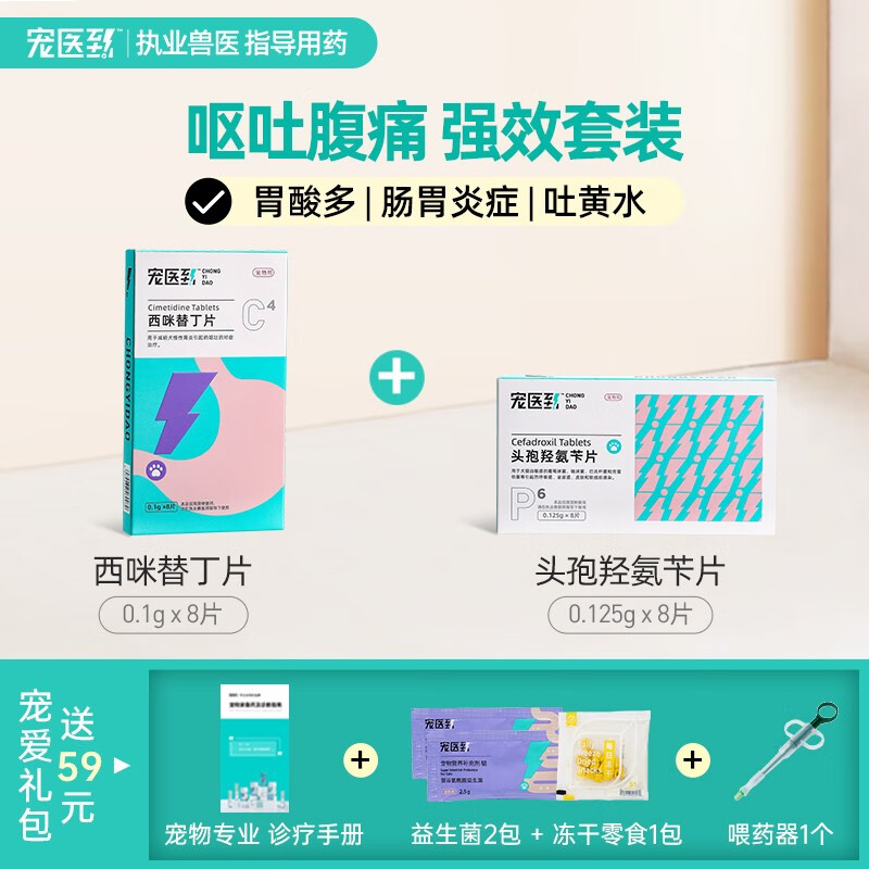 【七仓直发】宠医到 宠物止吐药肠胃药狗狗猫咪止痛止泻西咪替丁片 呕吐腹泻炎症吐黄水白沫胃酸含益生菌 西咪替丁 头孢羟氨苄(呕吐腹痛)
