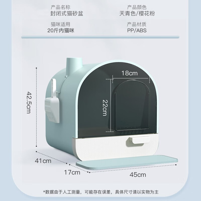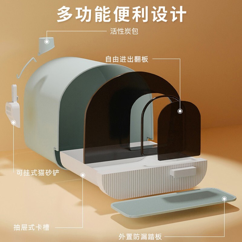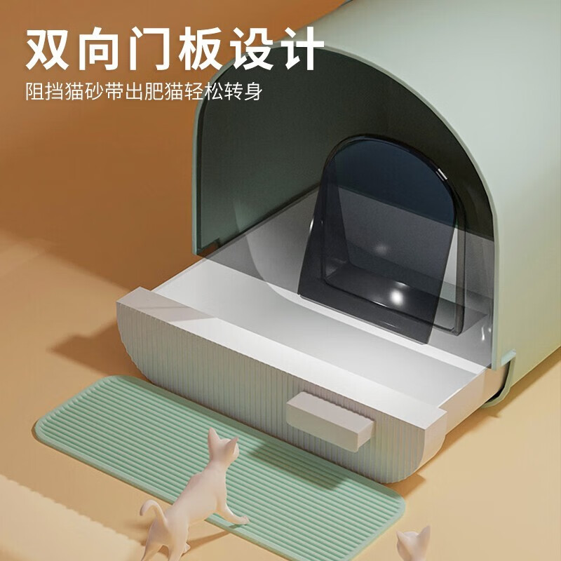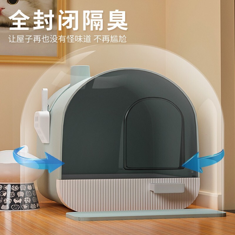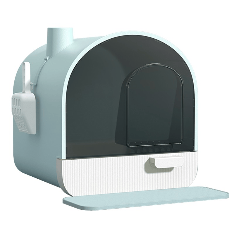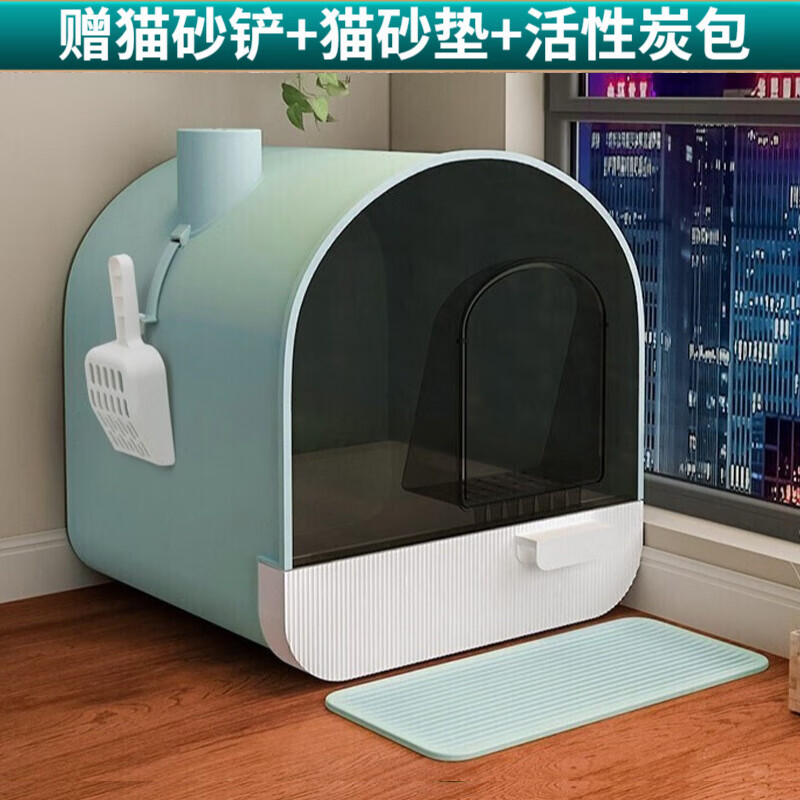 Dr.Bio 猫砂盆全封闭特大号猫厕所封闭式顶入式走廊带盖盘幼猫布偶猫抽屉式猫咪猫沙盆猫屎盆猫砂铲 天青色特大号【猫砂垫 猫砂铲 活性炭包】