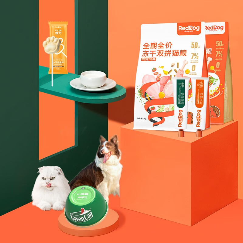 红狗RedDog 益生菌整肠宝狗狗猫咪 宠物肠胃宝蛋白酶益生元酵素腹泻调理 成幼犬猫通用25g 品牌礼卡(赠品,不发货)