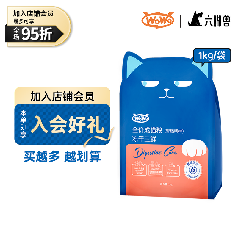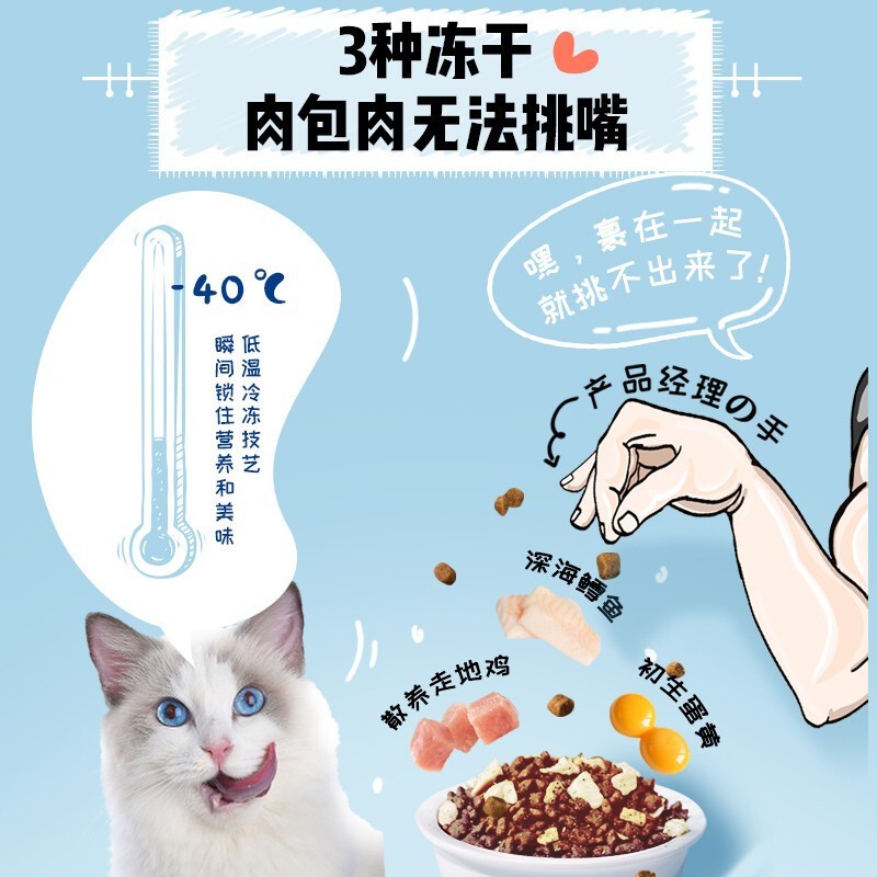 WOWO喔喔猫粮 冻干三鲜胃肠呵护全价成猫粮3种冻干4种肉专治挑嘴 每1kg送100g