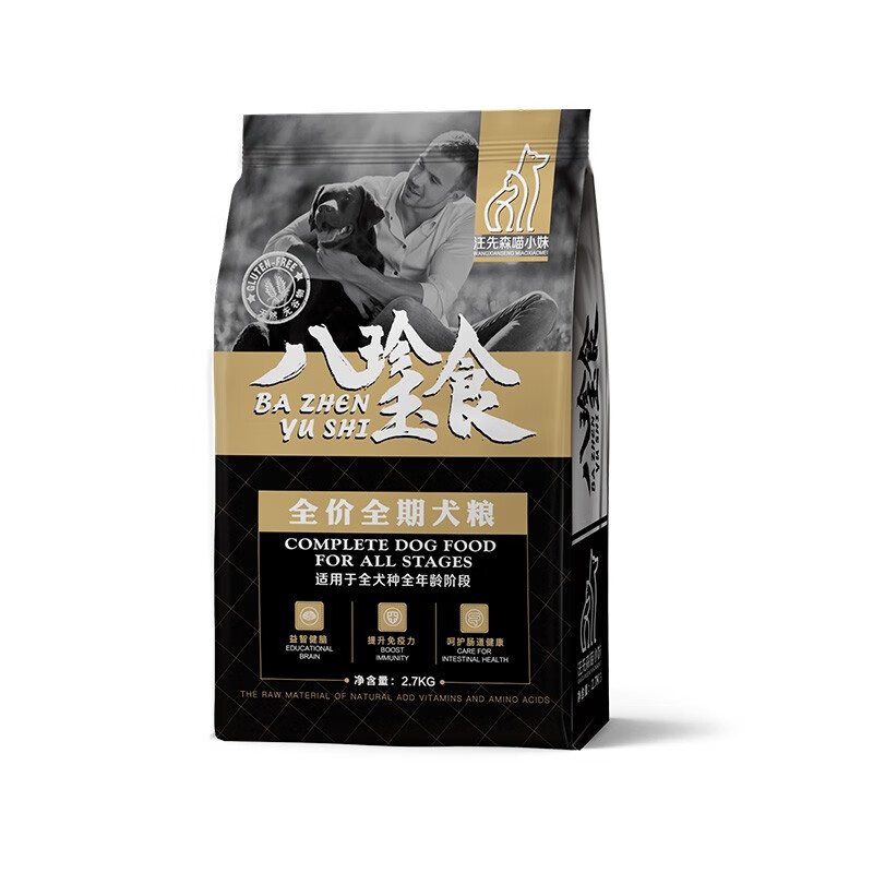 汪先森喵小妹 狗粮泰迪金毛拉布拉多萨摩耶贵宾哈士奇柴犬幼犬成犬全犬种通用营养美毛全期犬粮2.7kg/袋