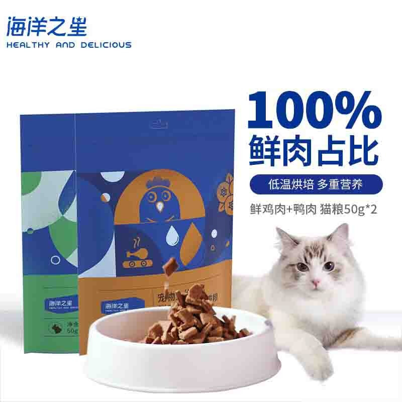 【咨询送赠品】海洋之星烘培粮宠物鲜肉低温烘焙猫干粮防挑食鸡肉鸭肉味成猫幼猫全价猫粮 猫鸡肉试吃50g 鸭肉试吃50g