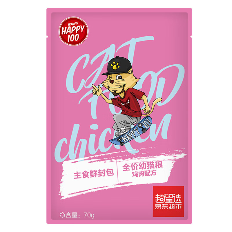 顽皮(Happy100)主食鲜封包 全价幼猫猫粮 鸡肉配方70g(JD)