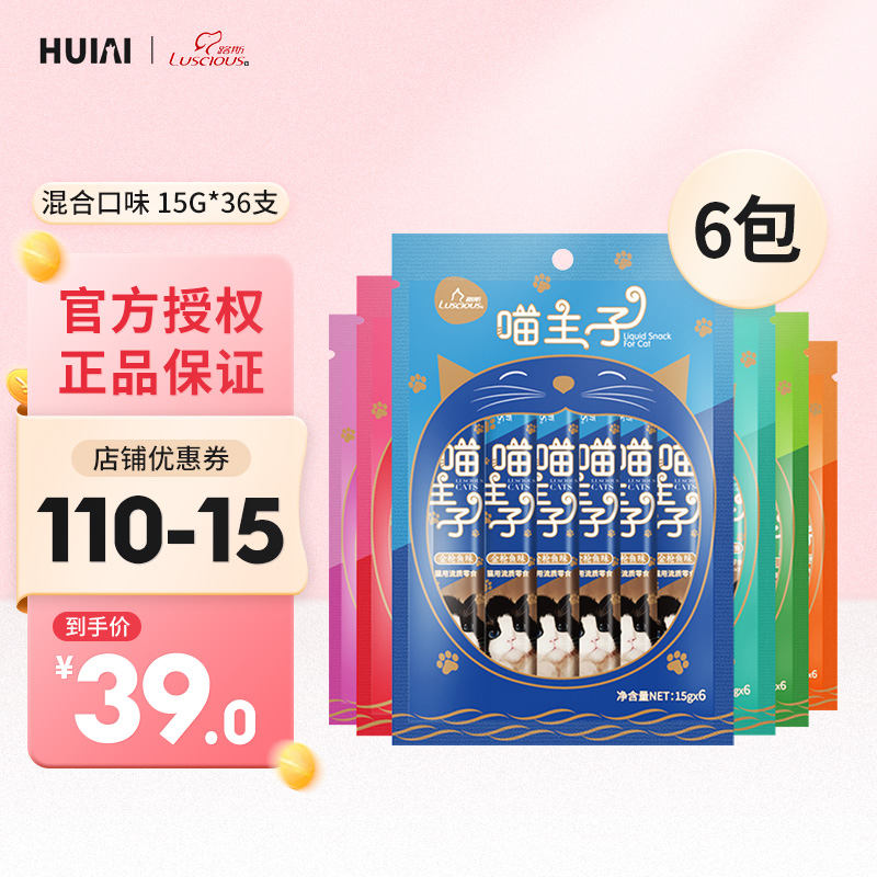 路斯喵主子宠物猫咪流质猫零食15g*6条湿粮猫条猫罐湿粮幼猫宠物食品 混合口味6包共15g*36条