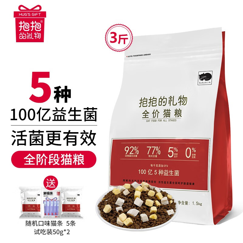 抱抱的礼物益生菌猫粮鲜肉天然无谷成猫幼猫高肉双拼冻干全价通用型猫粮 益生菌猫粮3斤装【 2袋试吃装】