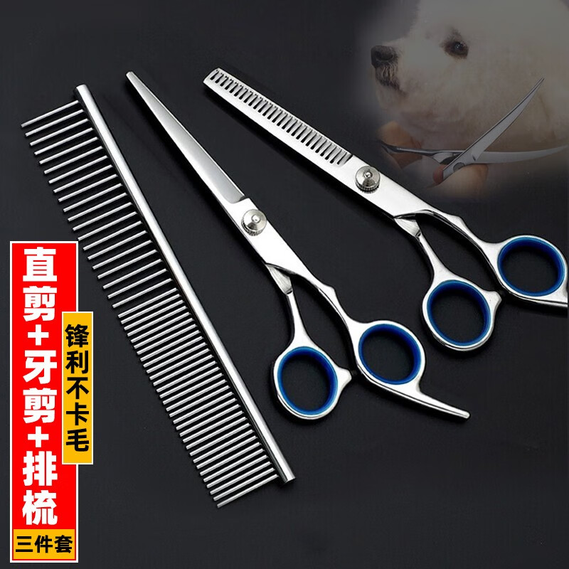 茨格曼 宠物美容剪刀 狗狗剪刀修毛剪 泰迪剪刀用品宠物直剪* 直剪 牙剪 套装(宋直排梳)