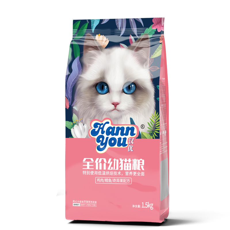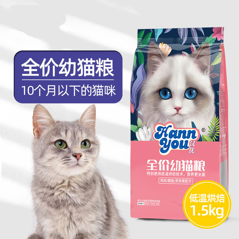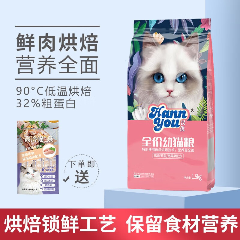 汉优低温烘培猫粮鲜肉布偶蓝猫橘猫加菲英短通用主增肥猫干粮 烘培幼猫1.5kg/袋