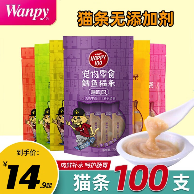 顽皮(Wanpy)猫条欧一吸猫条猫咪零食营养成幼猫增肥发腮补水湿粮营养增肥罐头 比目鱼口味 1包(5支尝鲜装) (5支一包)