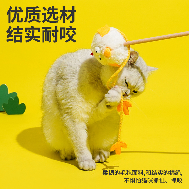 zeze小鸡羽毛逗猫棒长杆猫咪自嗨耐咬猫玩具新款幼猫猫薄荷响纸球