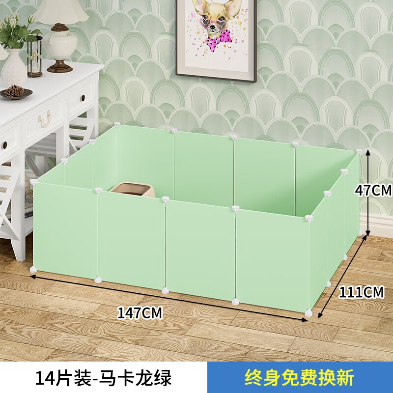 隔断围栏宠物狗笼子挡板屏风防止小猫咪栏门上床室内兔子护栅栏门 14片装-马卡龙绿 升级加高加固款
