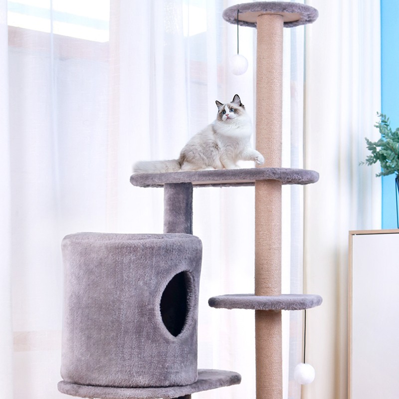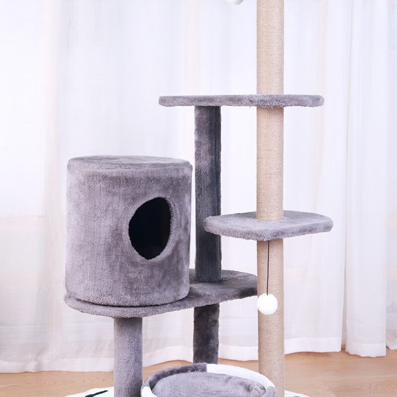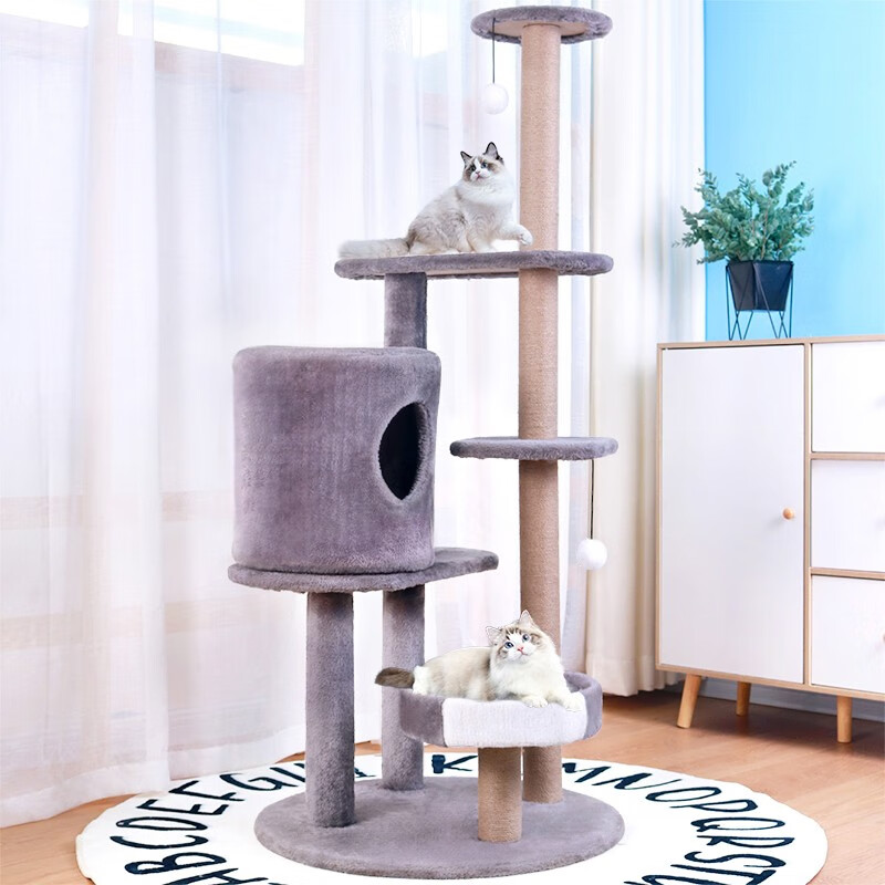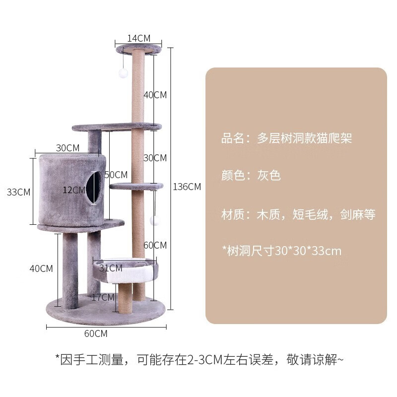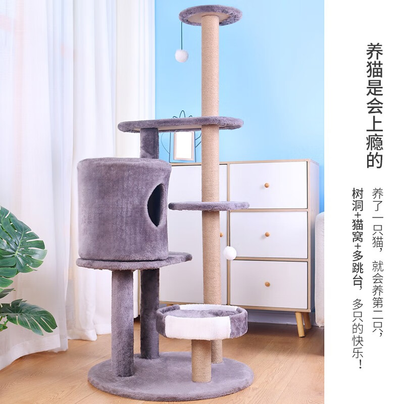 喵先生 猫爬架 豪华多层猫玩具猫抓板剑麻猫抓柱树洞猫窝毛绒布猫树带跳台猫架子宠物猫咪用品 深灰色树洞款