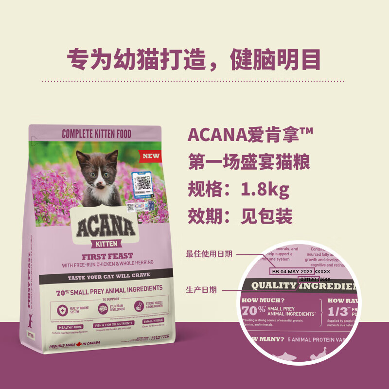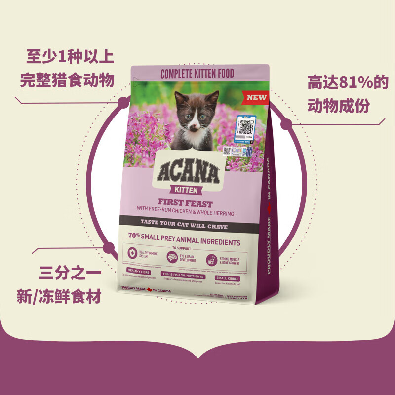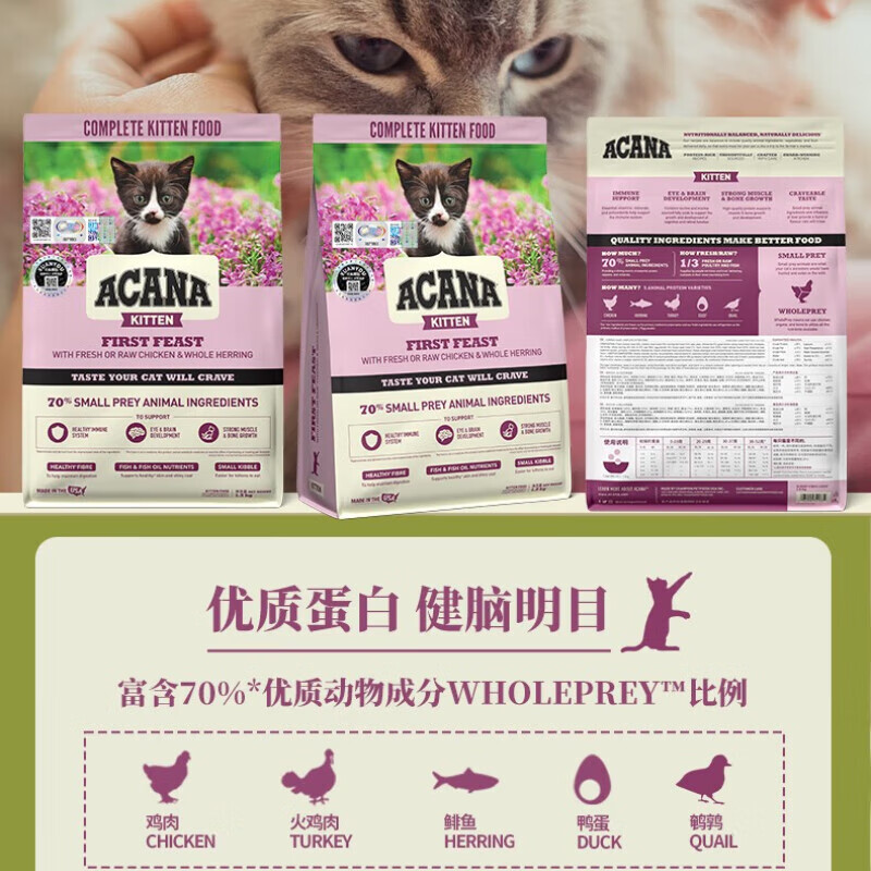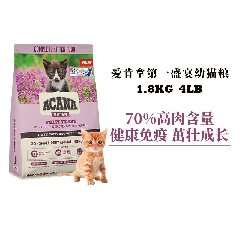 爱肯拿(ACANA)加拿大进口第一场盛宴配方粮幼猫猫粮无谷全价 幼猫专用燕麦鸡肉1.8kg