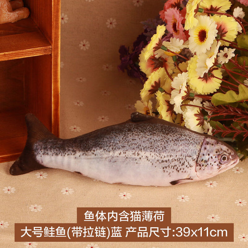 猫玩具鱼 小猫抱枕 仿真猫咪鱼玩具 抓狂逗猫棒 薄荷包 宠物玩具 鲑鱼(有拉链,适合大猫)