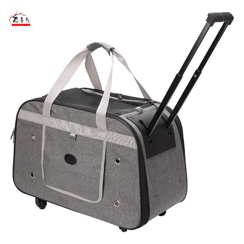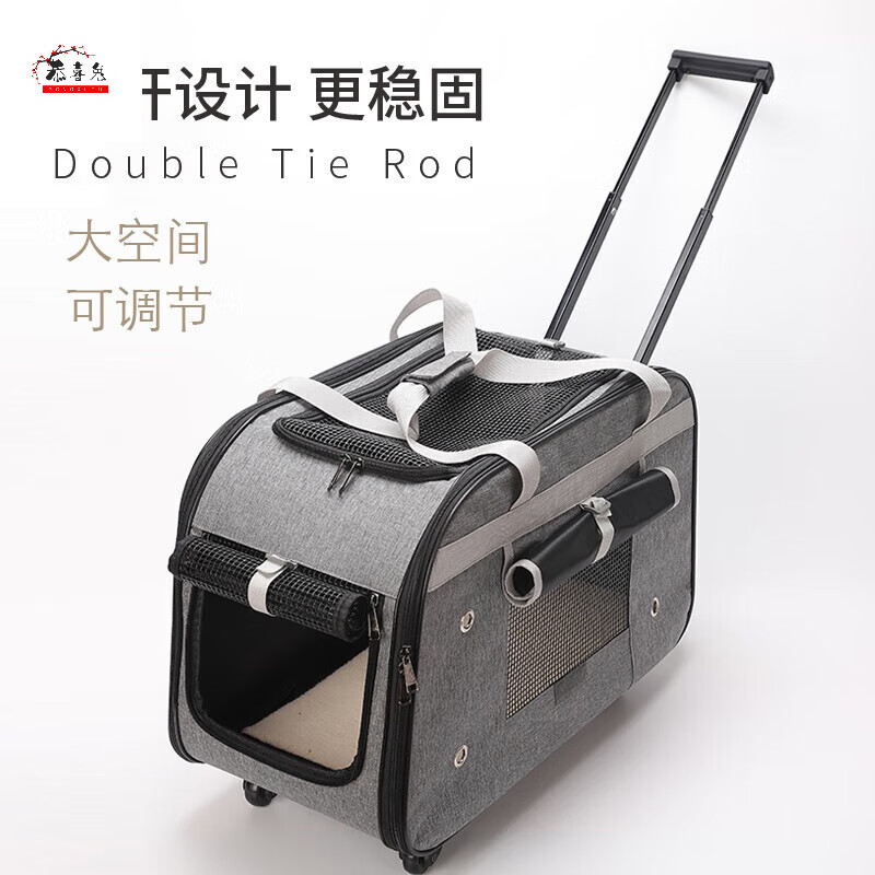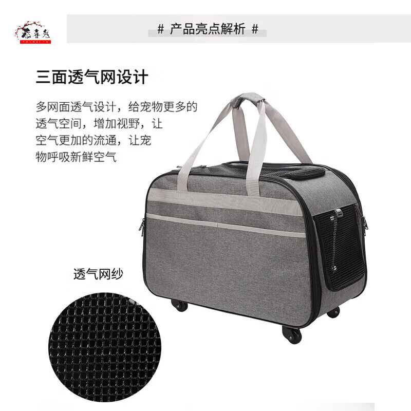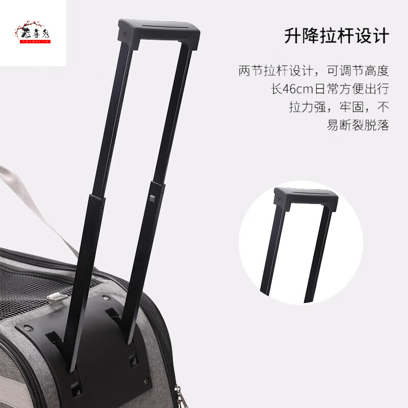 乖可爱(GUAIKEAI)宠物拉杆箱外出大容量两只猫咪行李箱便携狗包推车透气超大号猫包 浅灰色L码_59*31*38_25斤内狗30