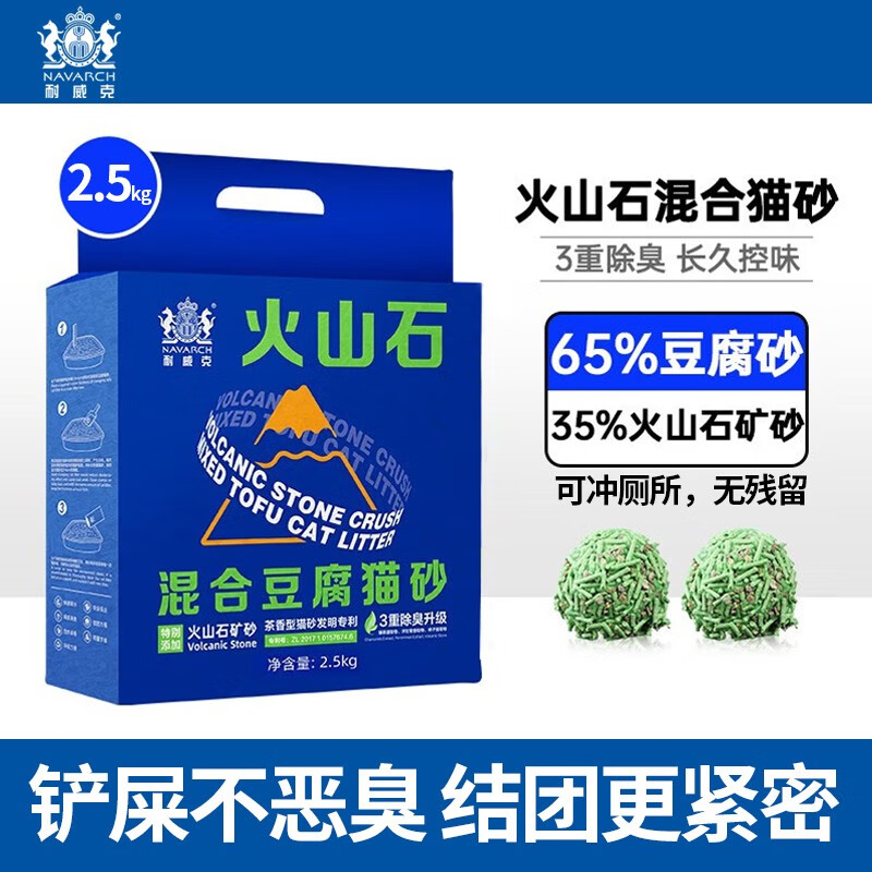 耐威克(Navarch)猫砂纯豆腐混合砂低尘除味快速吸水易结团可冲厕所幼成猫通用 火山石混合砂2.5kg[三重除臭]