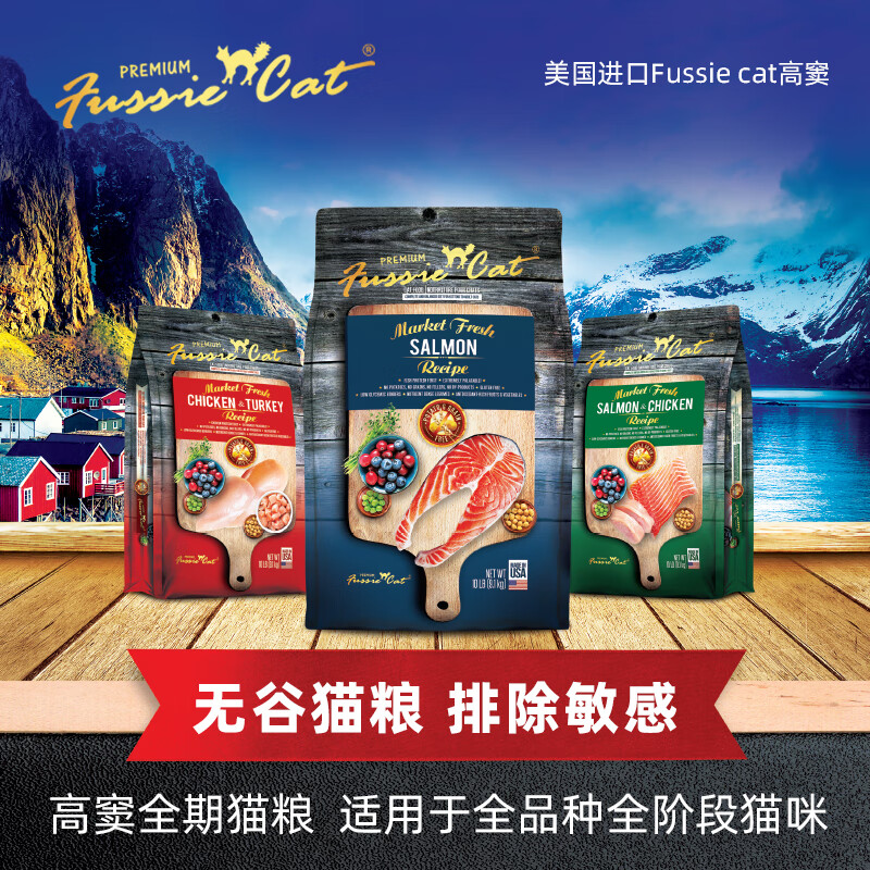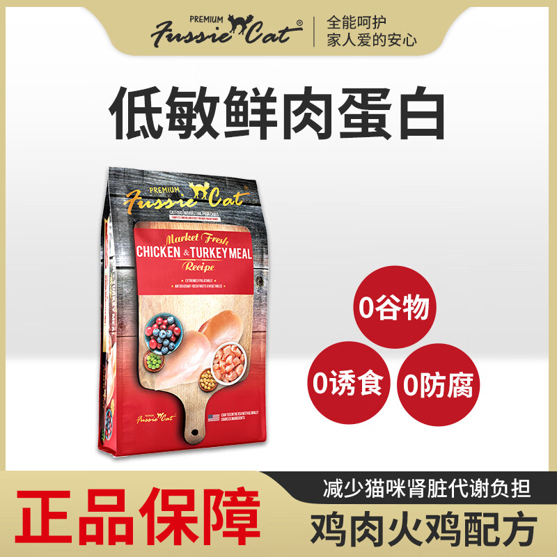 美国进口Fussie Cat 高窦猫虎宴全阶段鸡肉火鸡无谷物配方猫粮成幼猫全期通用增肥发腮宠物食品 无谷物