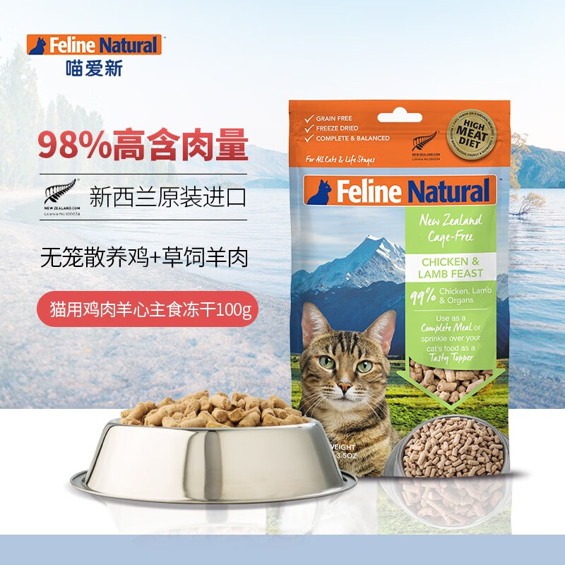 喵爱新【顺丰快递】 K9猫粮 猫冻干 新西兰进口成幼猫通用主食冻干粮 鸡肉羊心100g