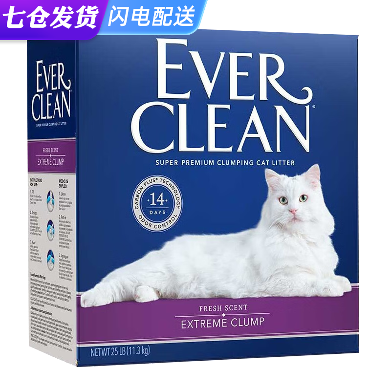 铂钻猫砂EverClean猫砂美国进口猫砂膨润土无尘活性炭除臭猫砂 [紫标] 极速结团猫砂25磅11.3kg