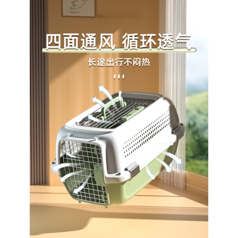 兰叙猫咪航空箱外出便携猫笼子狗狗宠物托运箱手提猫包车载狗笼小型犬 森野绿【15斤内-送隔尿板无挂碗 透气大空间,犬猫通用