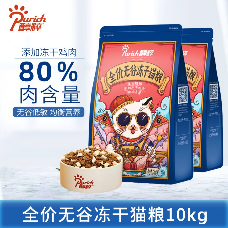 醇粹(Purich)猫粮 0谷物全价冻干猫粮 幼猫成猫英短美短布偶纯粹猫粮 宠物食品 鸡肉冻干猫粮10kg(5kg*2)