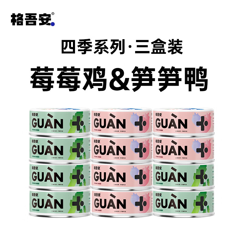 格吾安四季系列莓果鸡芦笋鸭全价鲜肉猫主食罐4罐*3盒[实发3盒(含附件)]