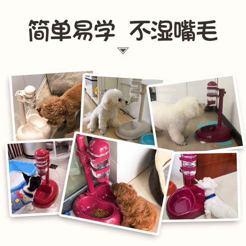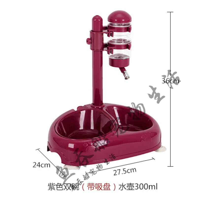 狗水壶悬挂狗狗喝水器挂式比熊水壶悬挂自动饮水器不湿嘴宠物水杯饮水机用品 紫色(带防滑垫)饮水器300ml 碗